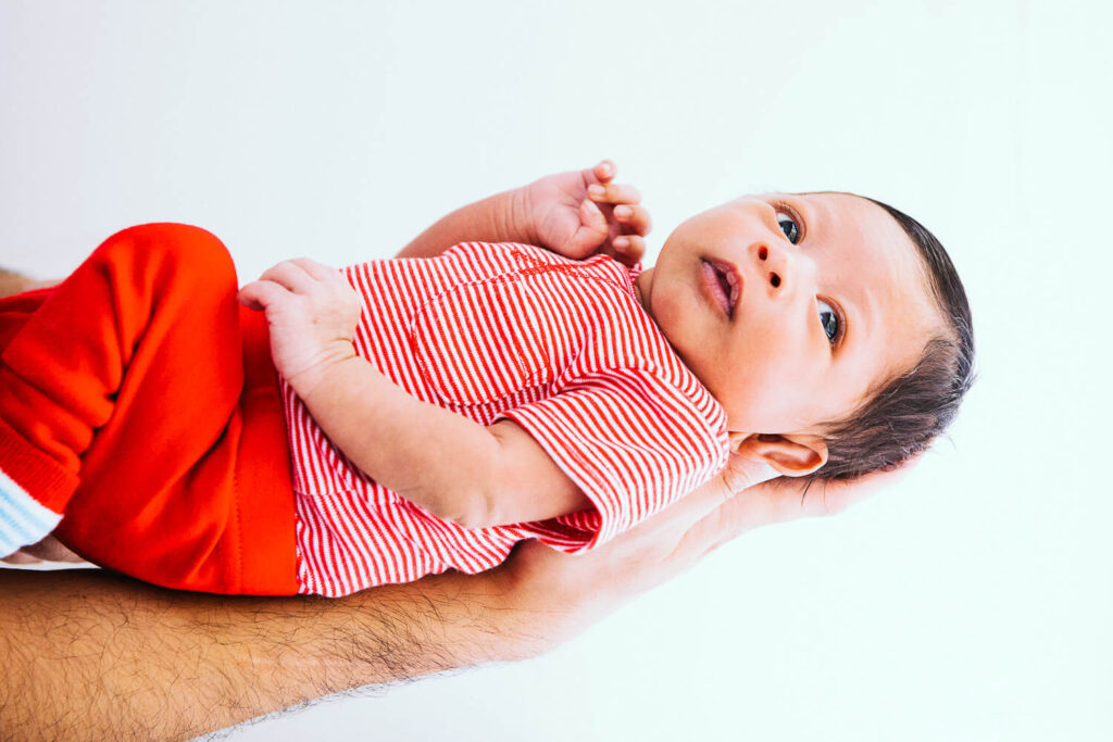 This depends on your preferences. If you want pictures of your baby dreamy, with their eyes closed, the best time for a newborn baby photography session is the first 10 days. If you wait a little longer, you'll have more awake time during your session where your kid will be alert with their eyes opened. We suggest you don't stress yourself—newborn pictures can be anything in the first three months. Waiting a bit can give mom a moment to recover from giving birth and the whole family to bond with your child.